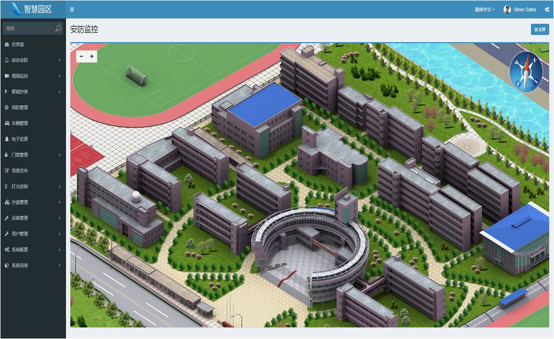 IBMS智慧園區綜合管理平臺由3D地圖操作平臺、智能監控平臺、視頻監視平臺三部分組成,也可定制其他模塊,實現園區多智能化系統的圖形化操作,可視化管理,集約化建設,智能化運營。
